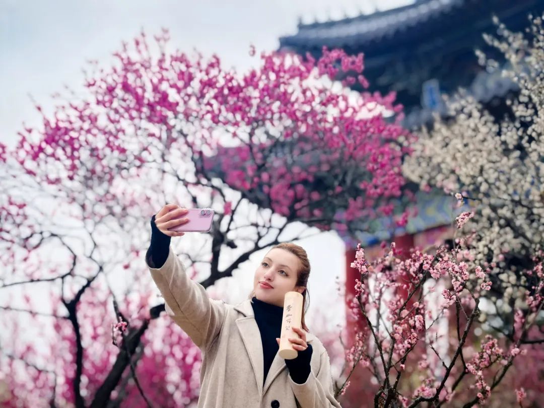 自1996年首届南京国际梅花节举办以来,春到梅花山踏青赏梅活动已成为南京乃至长三角地区极具影响力的重要文旅品牌和早春盛事。历经三十年精心培育与发展,该活动从单纯赏梅,发展成集文化、旅游、商贸、艺术于一体的综合性文旅活动。如今,活动在延续传统赏梅习俗的基础上,融入钟山拓春、非遗手作体验等特色内容,也吸引众多外国友人参与互动,以文化交流传递江南早春韵味。作为南京市级非物质文化遗产,春季赏梅习俗与“春到梅花山”文旅品牌相互赋能,焕发新的生机。