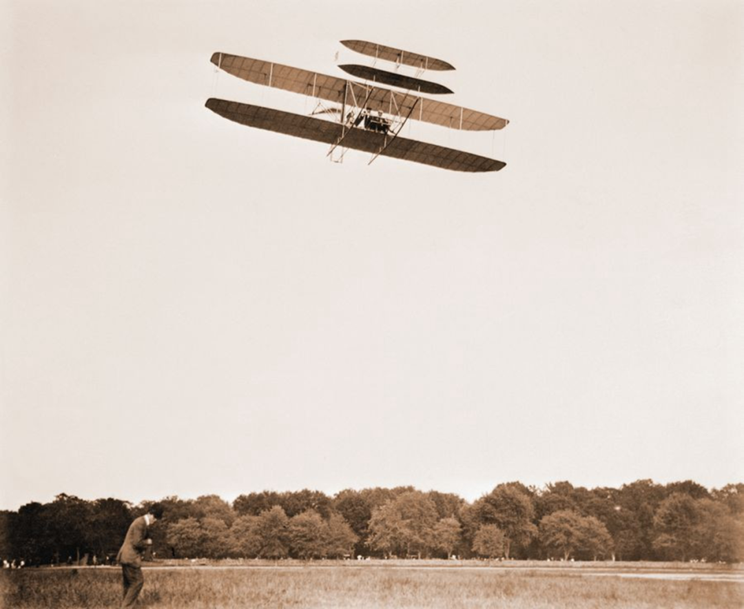 莱特兄弟驾驶飞机“飞行者一号”飞行