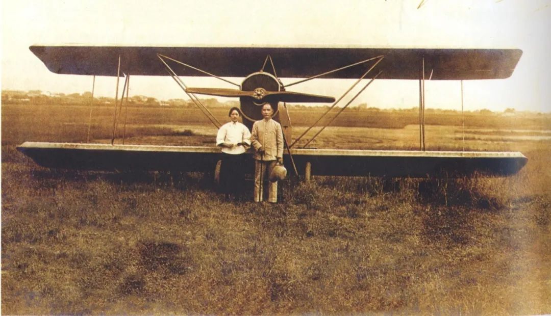 试飞典礼后孙中山、宋庆龄在飞机前合影