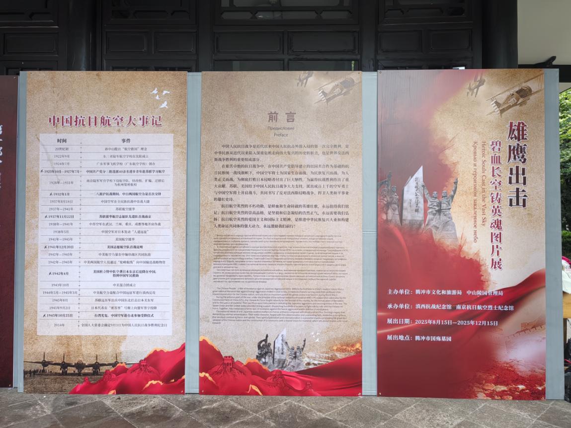 2025年是中国人民抗日战争暨世界反法西斯战争胜利80周年,8月15日也是日本宣布无条件投降80周年纪念日。为弘扬伟大抗战精神,传承红色基因,8月15日,由南京抗日航空烈士纪念馆与滇西抗战纪念馆联合主办的“雄鹰出击——碧血长空铸英魂图片展”在滇西抗战纪念馆国殇墓园正式开展。本次展览将持续4个月,带领观众重温抗战时期中国空军浴血奋战的壮烈史诗。