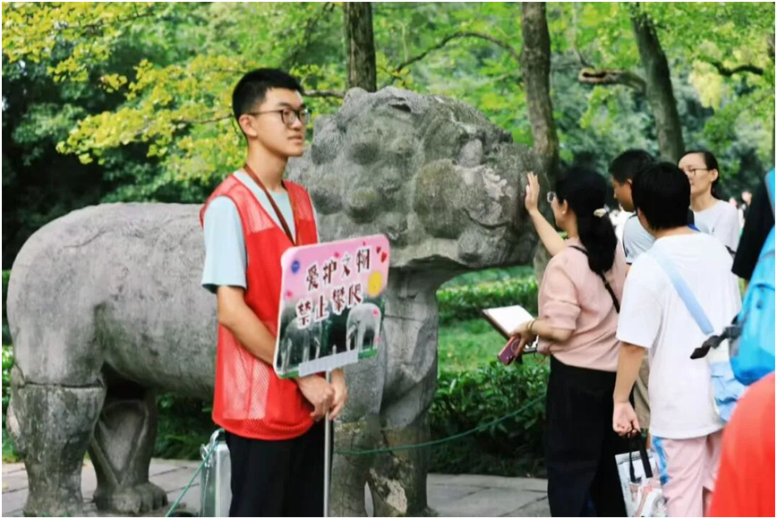 在明孝陵,文保志愿服务早已形成成熟体系。景区管理部门会根据景区客流量的变化、文物保护的重要性,把志愿者精准分到各个重点区域,让守护更“对症”。