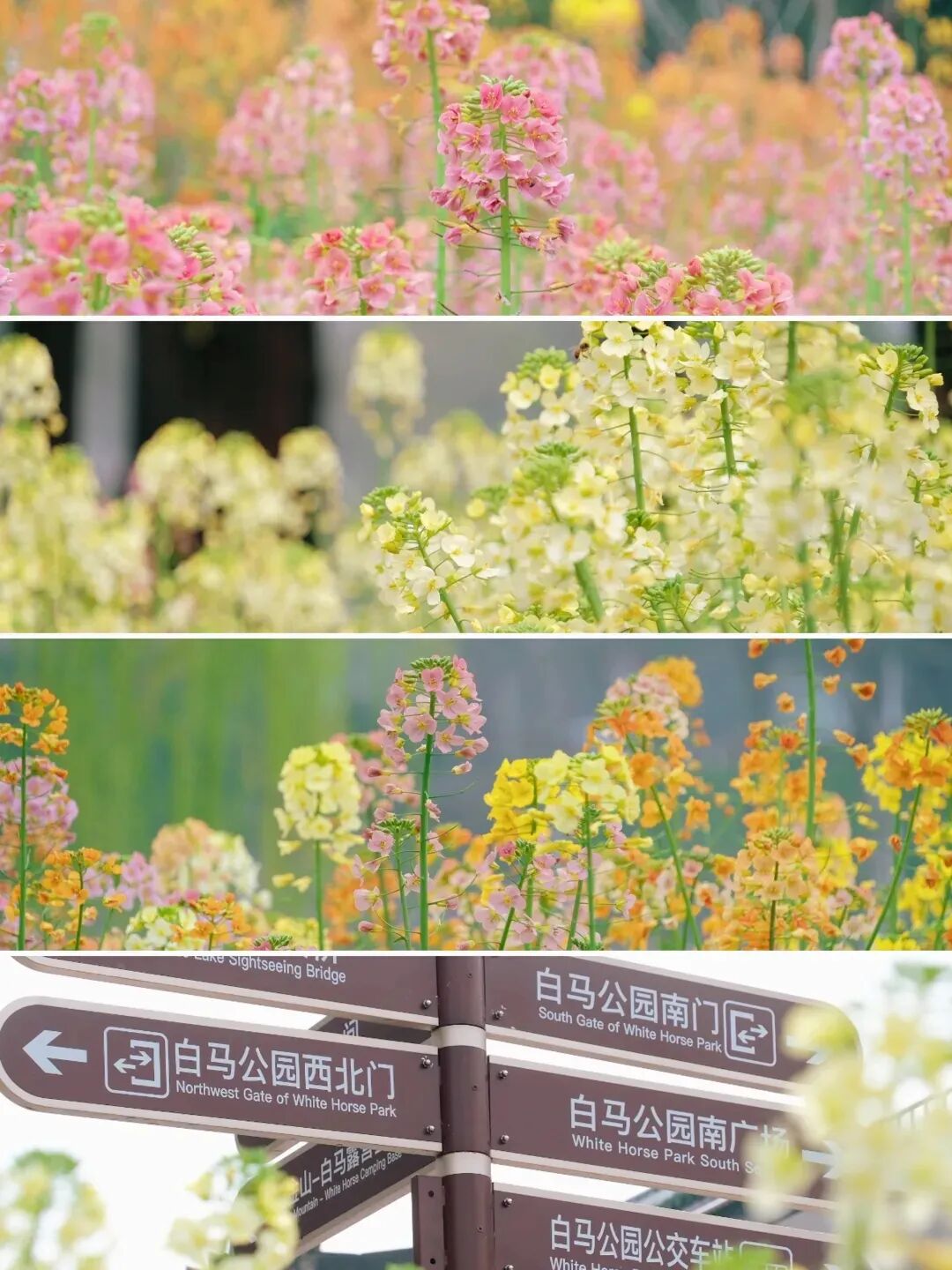 明孝陵景区内,二月兰正恣意生长,满眼都是清新淡雅的紫色花海;白马公园的彩色油菜花层层叠叠,绘就一幅春和景明的缤纷画卷。