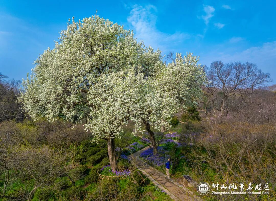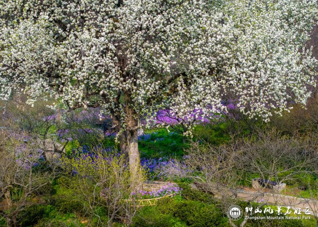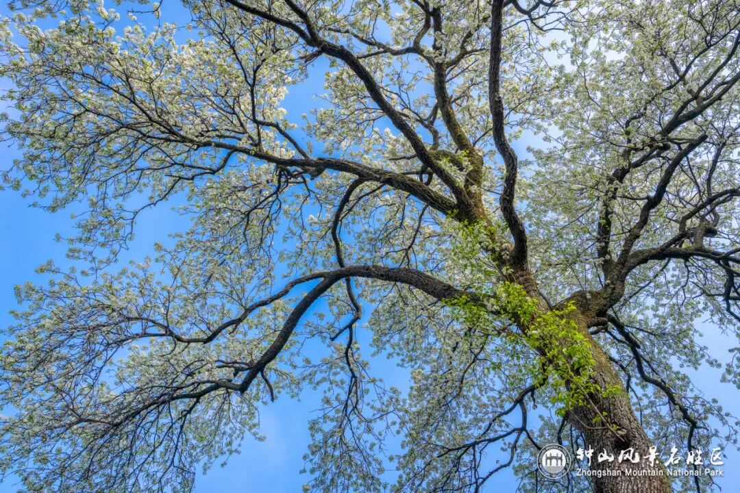 移步至百年豆梨树旁,满树素白,如云似雪,清雅脱俗,为春日钟山增添一抹温柔诗意。