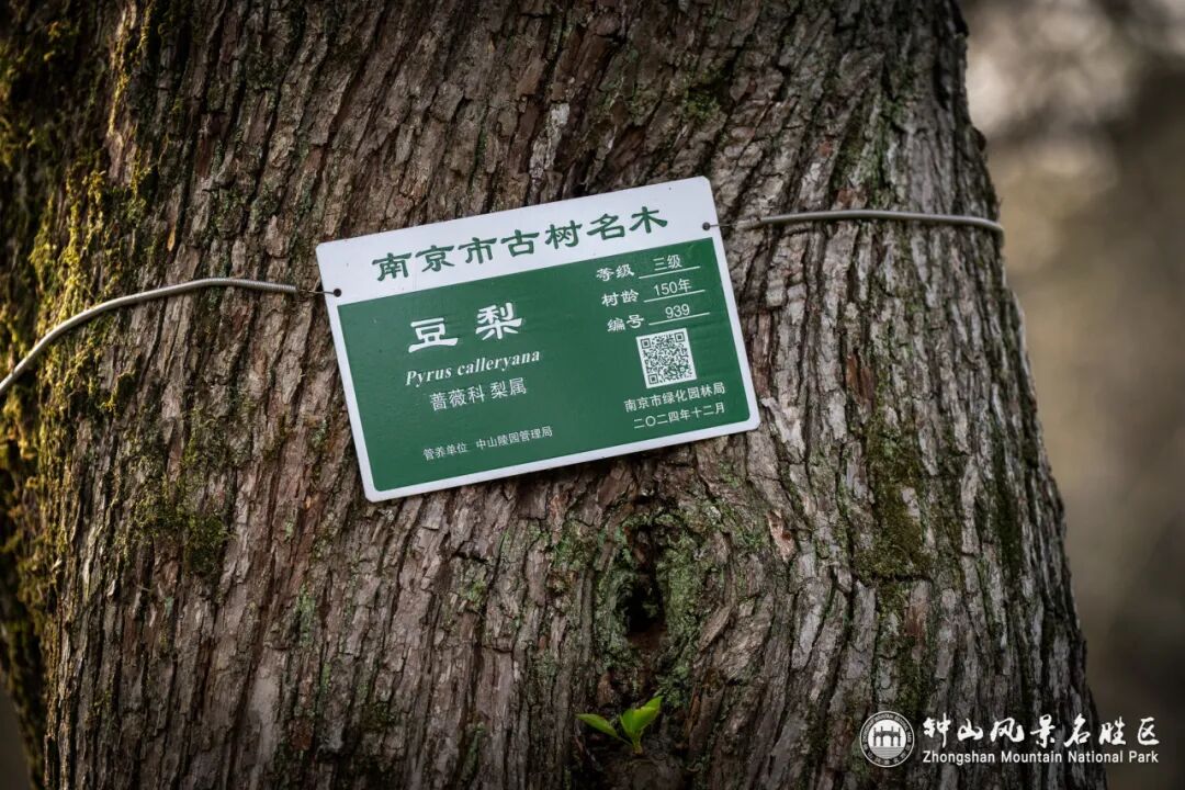 在梅花山区域的数株豆梨中,有一株更是南京市挂牌古树名木。