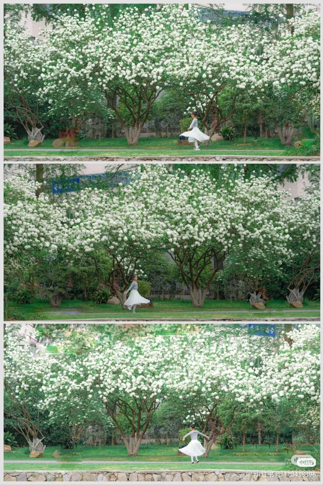 再往城北,此时的绣球公园内,高大的木绣球连缀成白色花廊,与城墙、湖光交织成画。