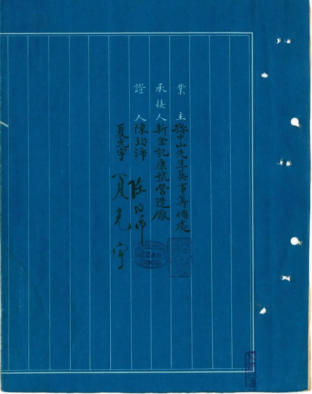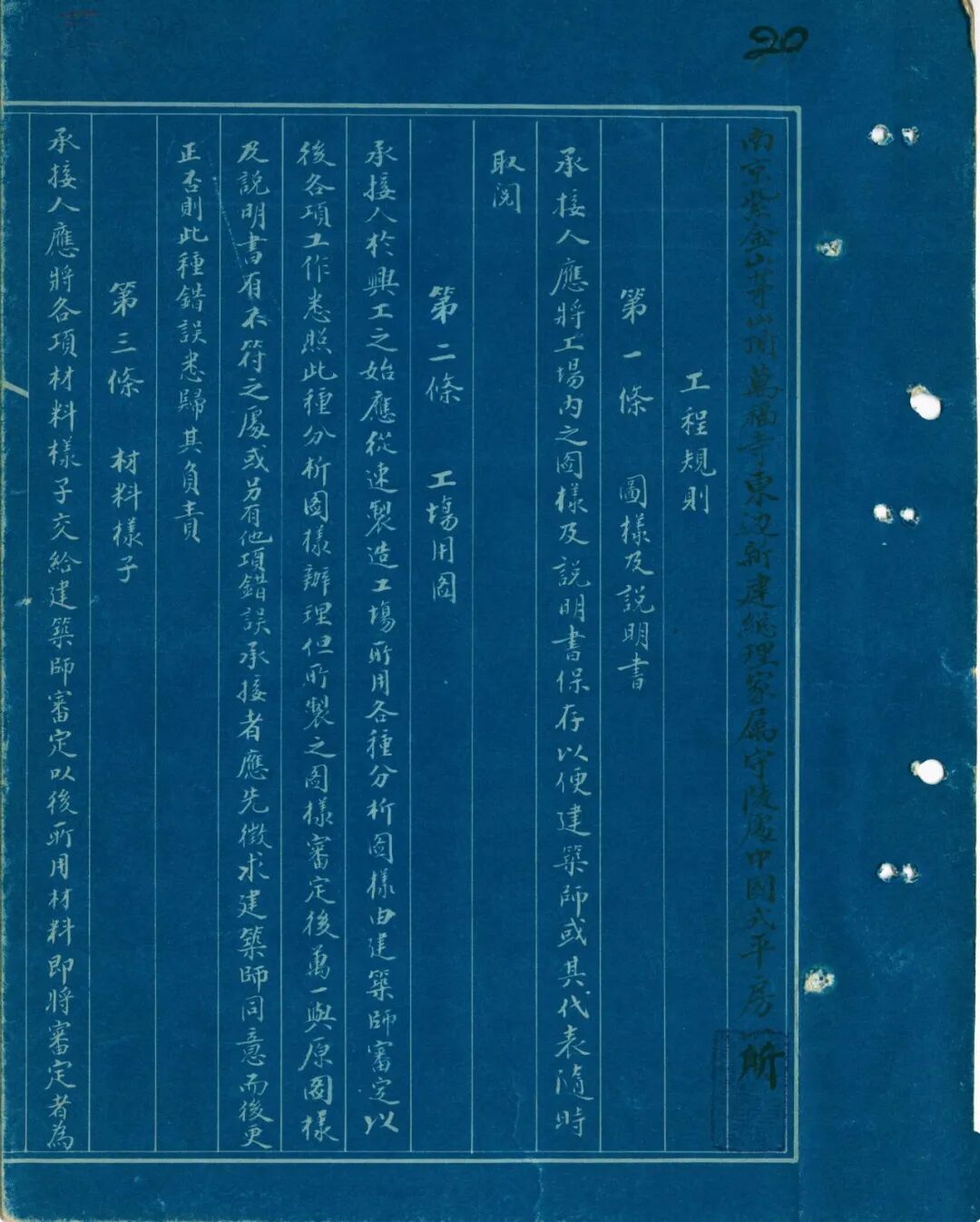 1929年3月15日孙中山先生葬事筹备处与新金记康号营造厂订立的工程合同(局部)(南京市档案馆藏)
