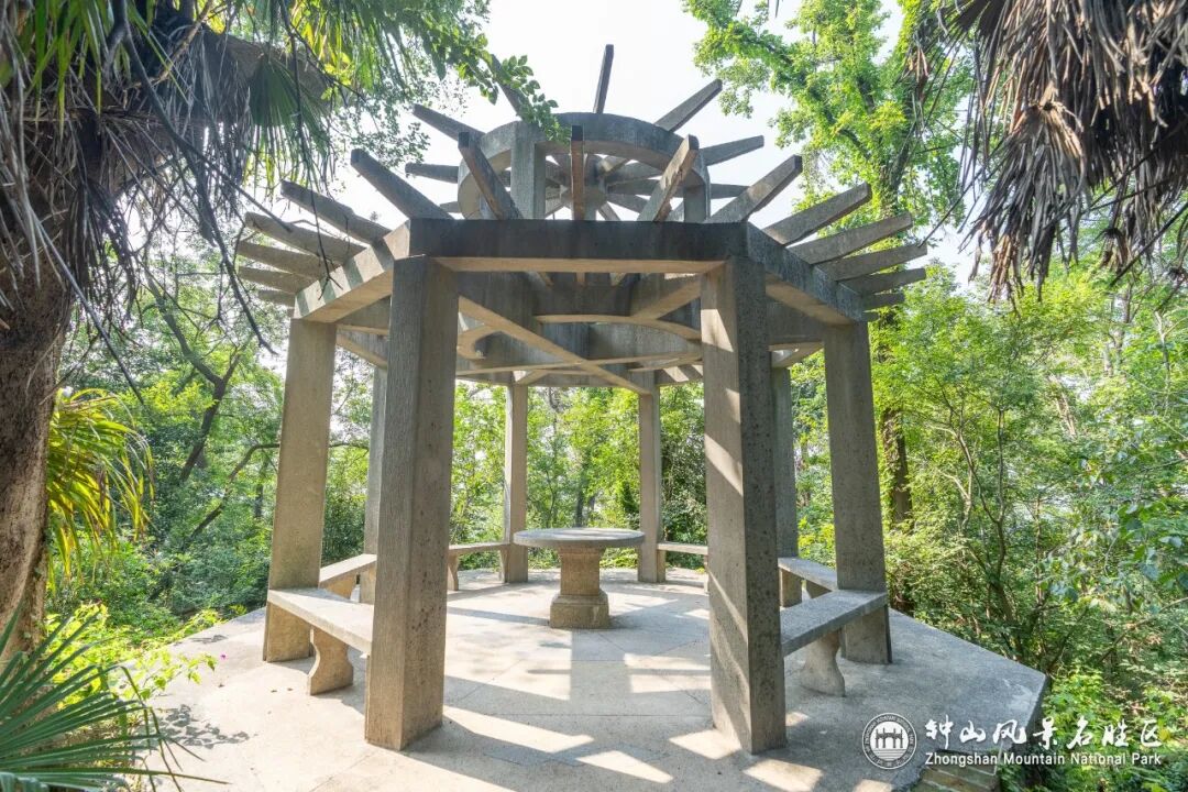 永慕庐东侧建有议政亭,这是孙科当年在此为父守灵时,议论时政,处理公务的地方。抗战期间,永慕庐和议政亭被毁,仅存残墙、石额与亭子的八角形基座。