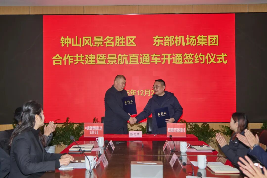 12月29日,钟山风景名胜区管理局、东部机场集团有限公司举行合作共建暨景航直通车开通签约仪式。“钟山风景名胜区⇋南京禄口国际机场旅游专线直通车”将于2026年1月1日起试运营。