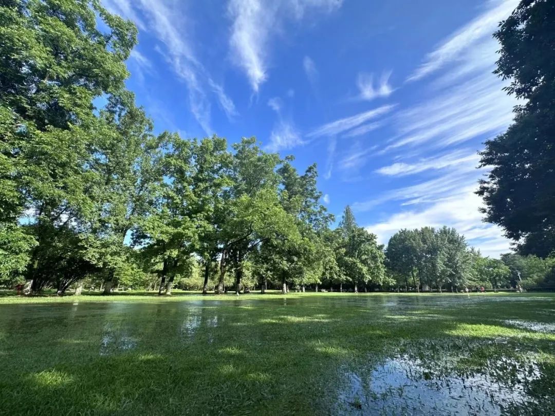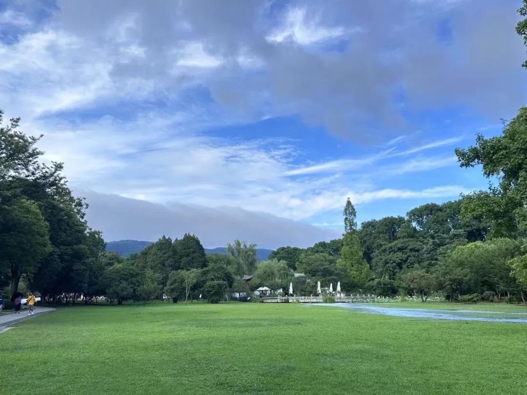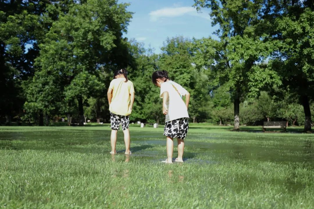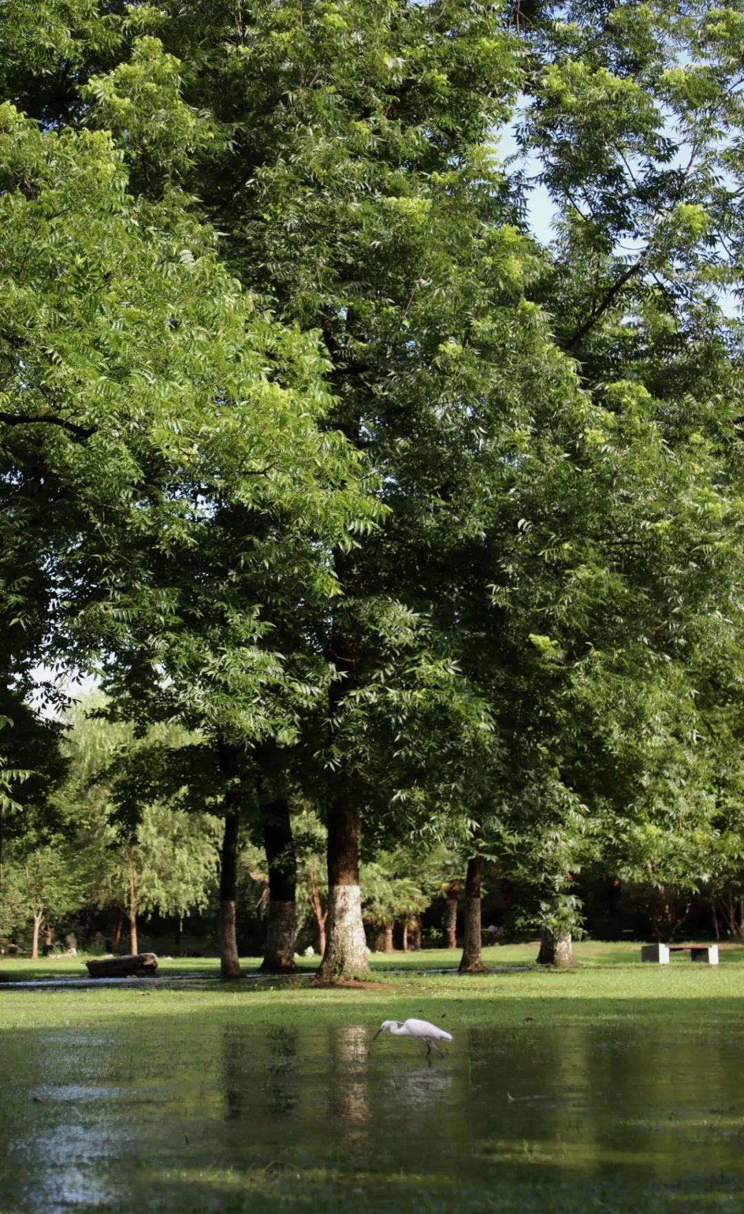 大雨浇透了梅花谷大草坪,碧绿的草地上甚至出现了小小溪流,孩童们惊喜的赤脚跑上去肆意踩水,感受水花四溅的清凉,白鹭也悄咪咪过来觅食。游人们时而踩踩水,时而驻足看一看雨后的青山绿草,欣赏鸟儿们精灵般的身姿,感受这雨后夏日的舒畅愉悦。