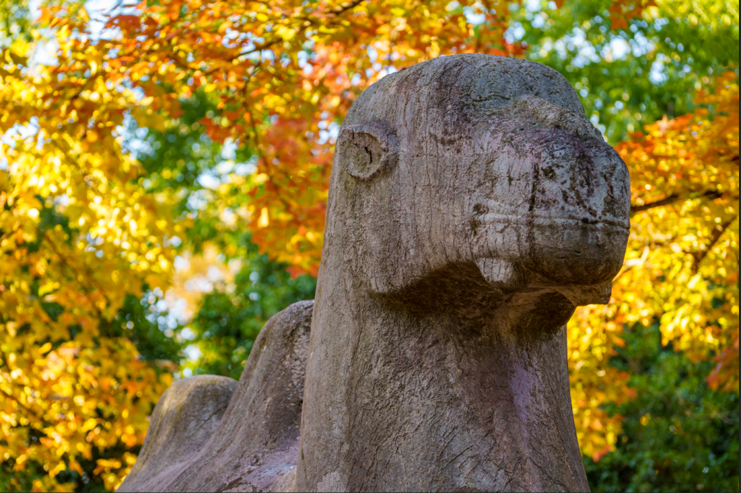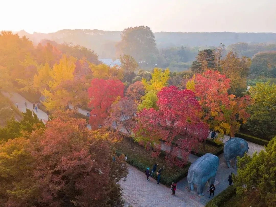 石象路是秋天里最让人惦记的景点, 它是明孝陵神道的第一段,两侧的石刻历经风雨,见证着600多年的沧桑变幻。