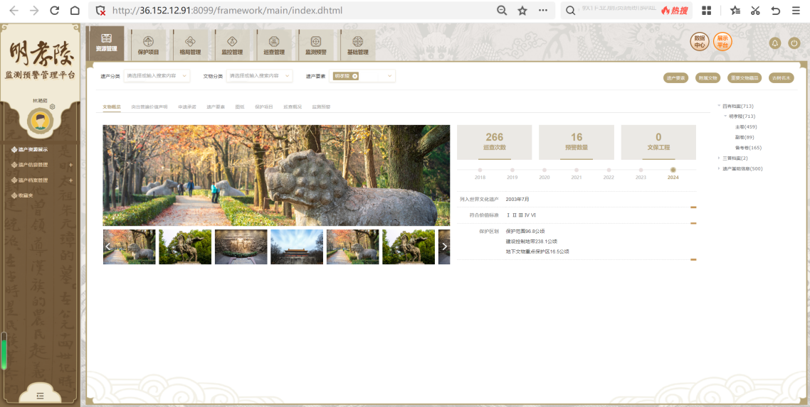 明孝陵遗产监测预警系统软件平台