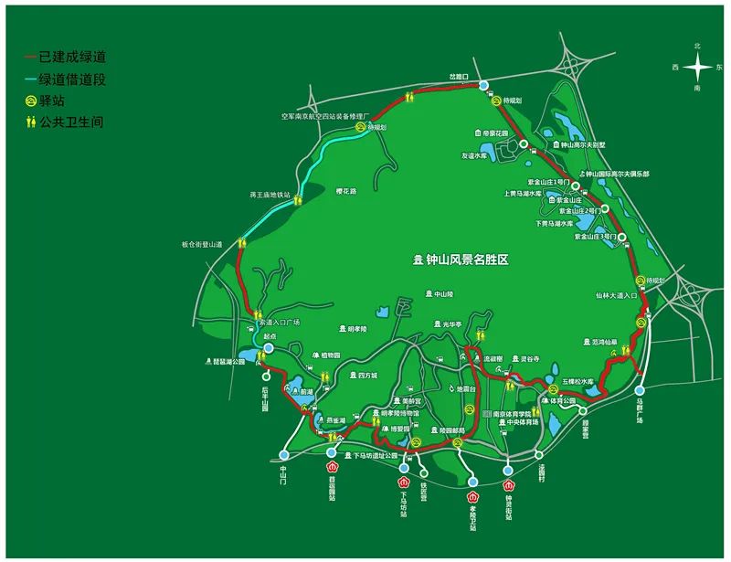 环紫金山绿道串联了明孝陵、中山陵、音乐台、紫金山天文台、燕雀湖、灵谷景区、明城墙等景观打卡点。