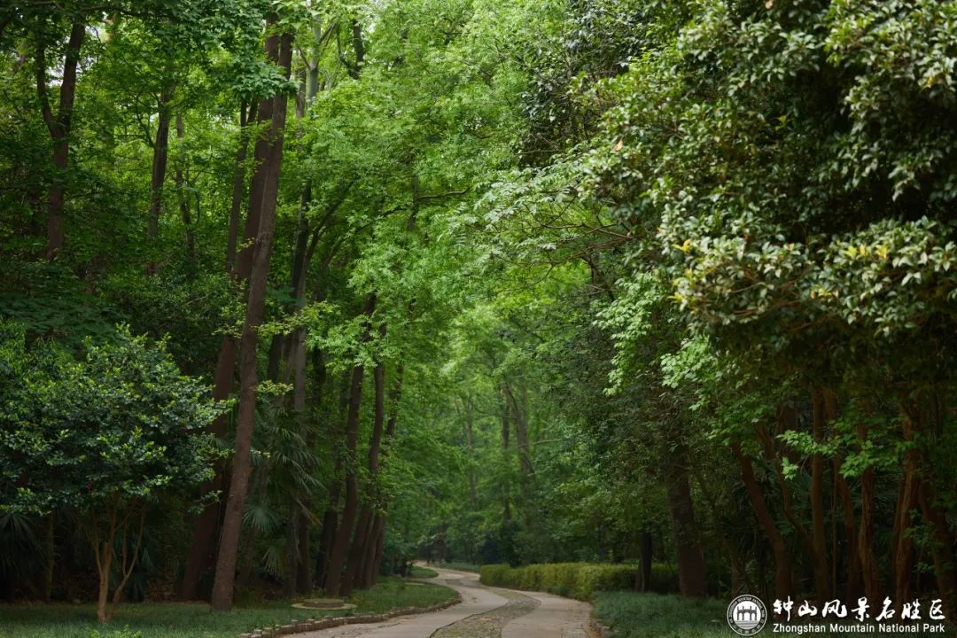 沿着中山陵东侧的一条登山道散个步,经过中山书院,过藏经楼,偶尔抬头看,满眼除了连绵的绿波,还有树冠之间透露出来的天空脉络,像纵横交错的血管,又像溪流汇聚成江河,这其实就是神奇的“树冠羞避”现象。