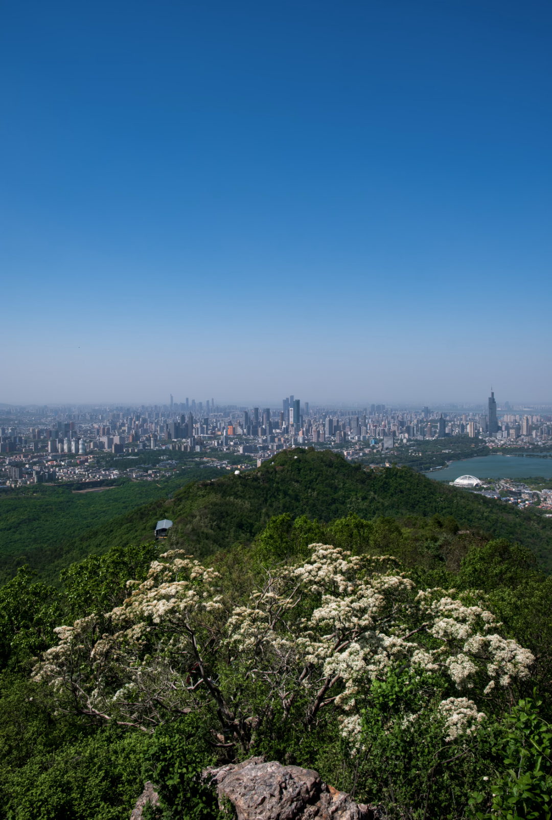 藏经楼西侧的中山书院登山道可以一直连通到青年路登山道上,沿着青年路登山道向上到中马腰,再经八百米至山顶,两侧的花灌开得也正热闹,山莓、蓬蘽、华东荀子、拔葜、白檀、蔷薇,一路开到了山顶公园,在这里能看到树龄超过百年的流苏树。