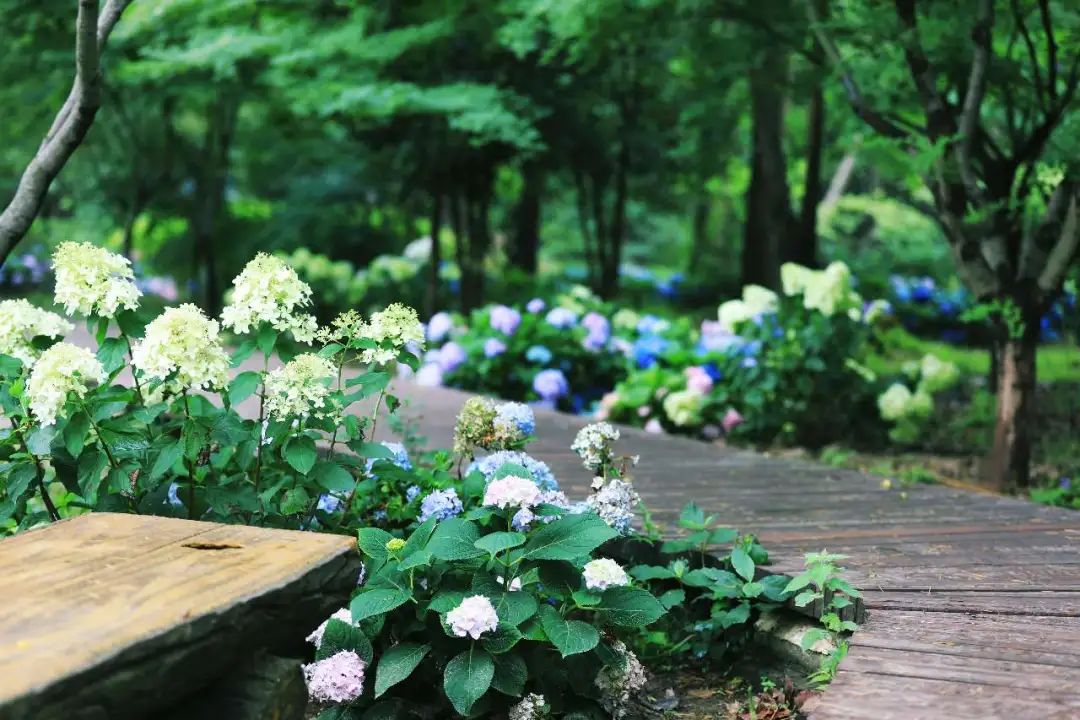 In the enchanting days of May, stroll along the lakeside path and you’ll see the majestic Zhongshan Mountain rising in the distance, setting the scene like a painting. Closer to the water, lush hydrangea flowers bloom in brilliant hues, like nature’s own palette come to life. Thoughtfully arranged by expert gardeners, the flowers layer and cascade into a sea of color, blending beautifully with the shimmering lake and the tall, elegant cypress trees. At times, a gentle mist drifts through the woods, and floating flower beds crafted from blooms drift lazily across the surface with the summer breeze—every moment feels like a glimpse into a fairytale.