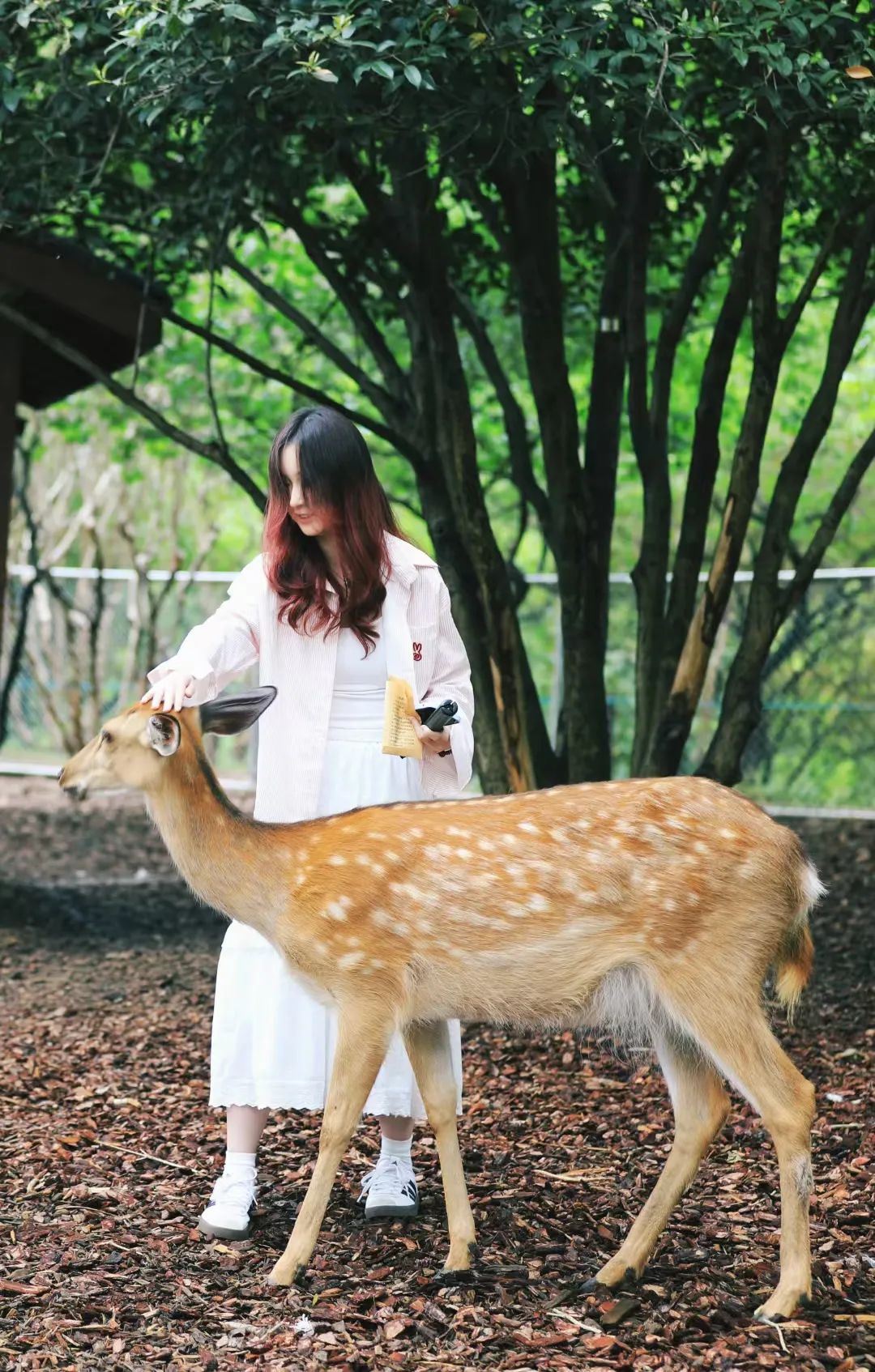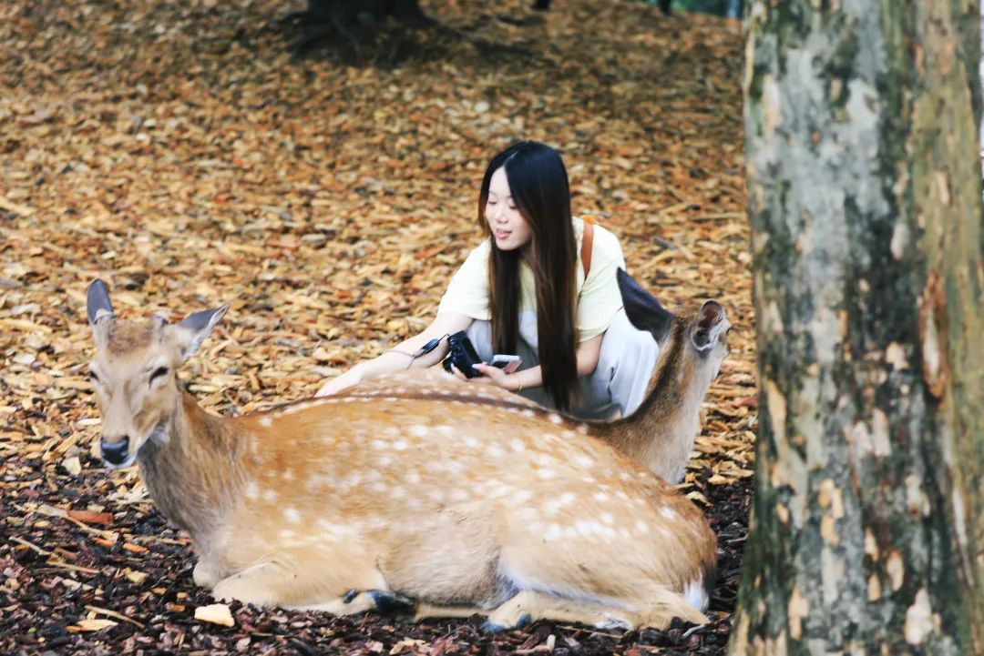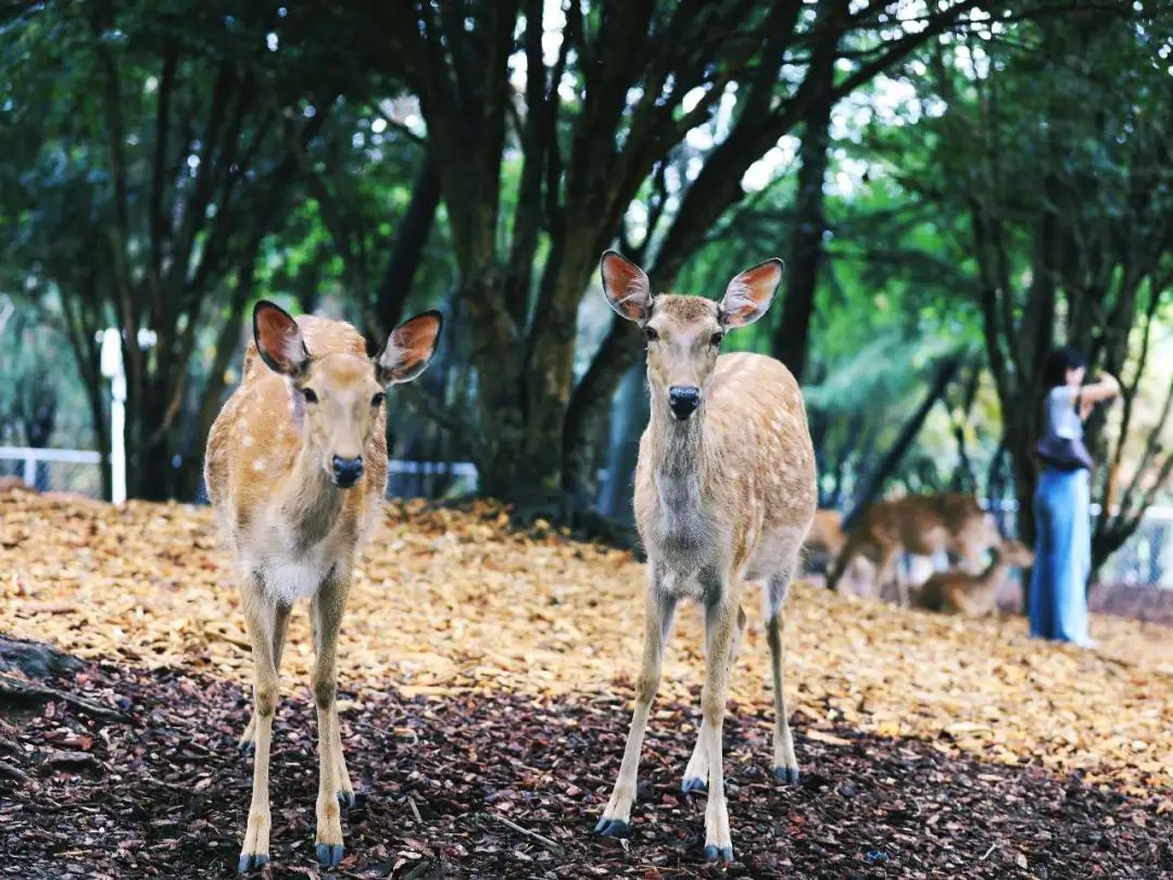 静谧的林间也藏着一种灵动,相传明太祖朱元璋在建造明孝陵时,在园内养鹿千头,鹿的脖子上挂着“长生鹿”或“银牌鹿”。据史料记载,康熙皇帝前来谒陵时,仍有鹿穿梭于钟山林间。如今,燕雀湖旁有一处“长生鹿苑”,远处燕雀湖波光粼粼,近处小鹿相伴左右,时光在此刻慢了下来。在这里,没有城市喧嚣,只有人与自然和“呦呦鹿鸣”,仿佛闯入梦幻的“绿野仙踪”。