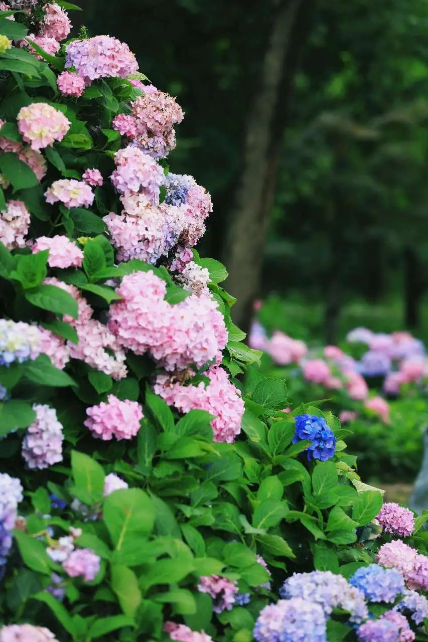 迷人的五月,沿着湖边小径漫步,远处,紫金山连绵起伏,为这幅画卷勾勒出壮阔的背景。湖畔大片的绣球花“无尽夏”娇柔绽放,仿佛是大自然打翻了最绮丽的调色盘。经过园艺师的匠心打造,花儿相互交织,高低错落,连绵起伏成一片绚丽花海,与波光粼粼的湖面、挺拔葱郁的落羽杉林相映成趣。林间,不时的飘来一阵水雾,园艺师将可爱的小花制作成漂浮的花坛,夏风吹来,花坛随波飘荡,每一眼都是人间仙境般的绝美景致。