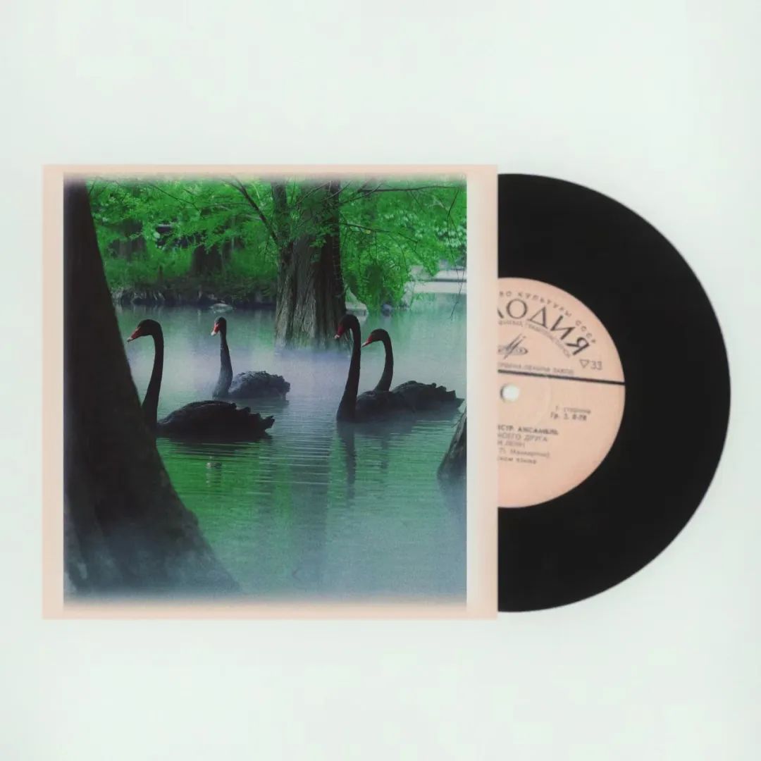 mirrors the sky and blossoms above. Swans—white and black—glide