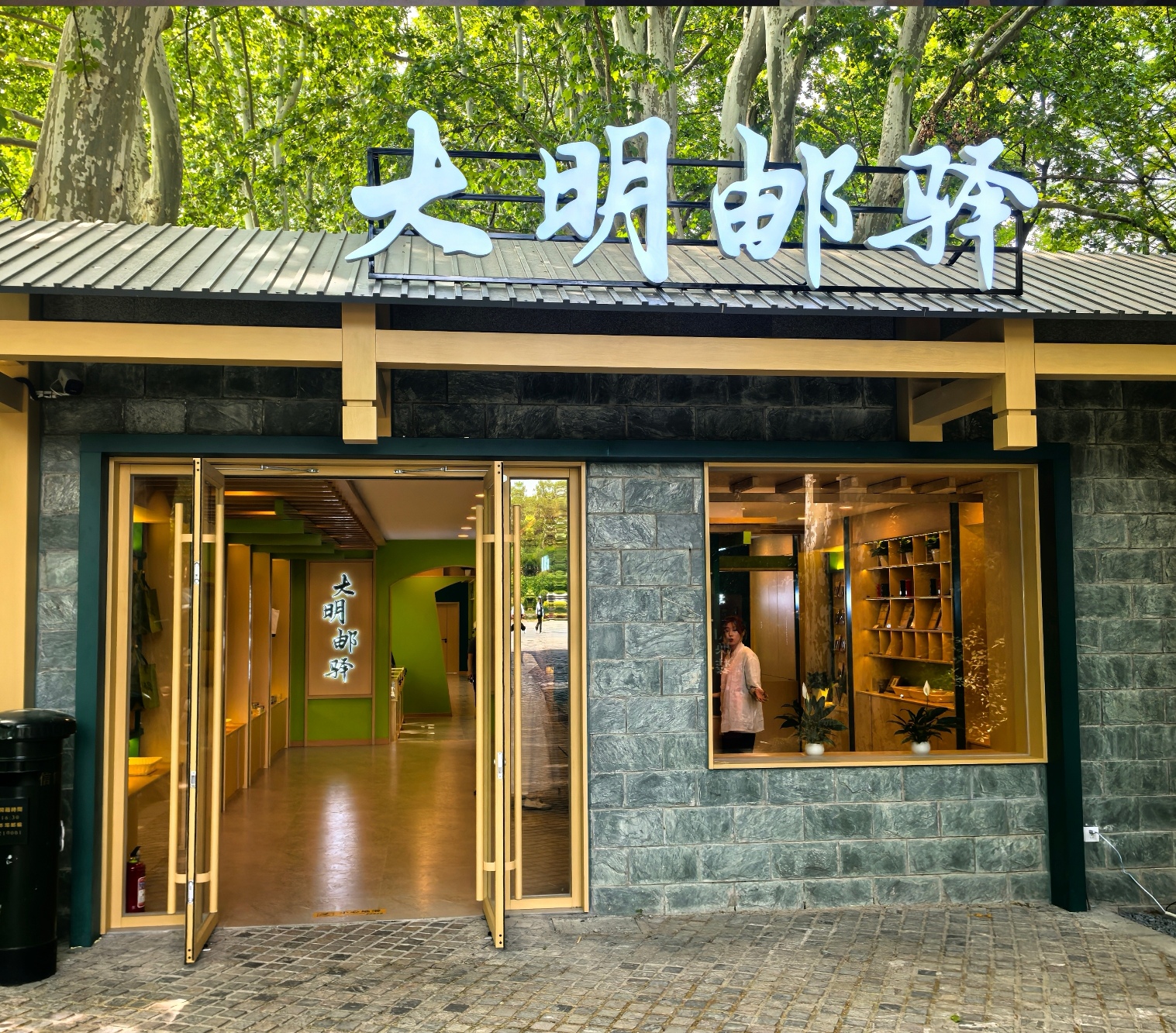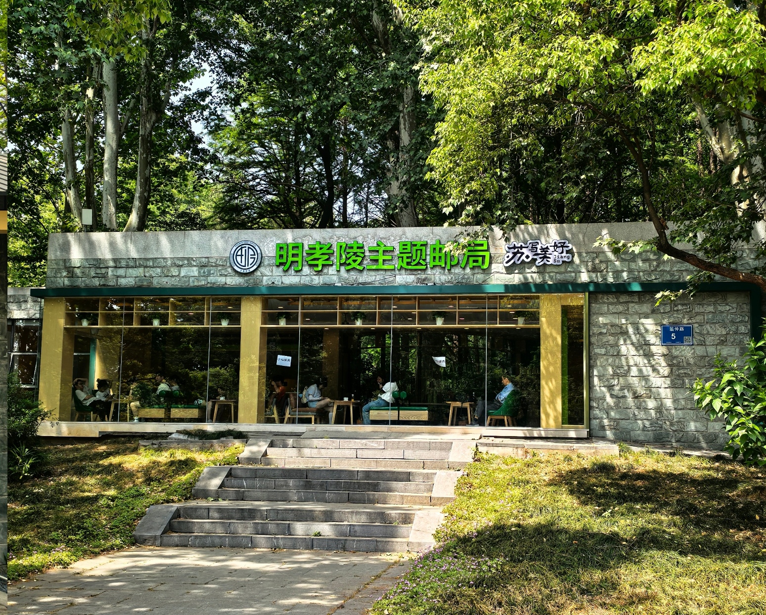 明孝陵大明邮驿主题邮局是南京市邮政分公司和中山陵园管理局合作开设的第二家5A级景区主题邮局。这里陈列着五十余种邮品,其中《历代名人咏江苏》邮册、《金陵十二钗》《钟山风景》明信片等蕴含南京历史文化的邮品,深受游客追捧。除了信件收寄、纪念邮戳加盖服务外,游客还可通过集章盖戳汇集南京足迹,通过云旅拍明信片解锁文旅融合新玩法。邮局内的特色餐饮区,也为游客提供了休闲小憩的好去处。