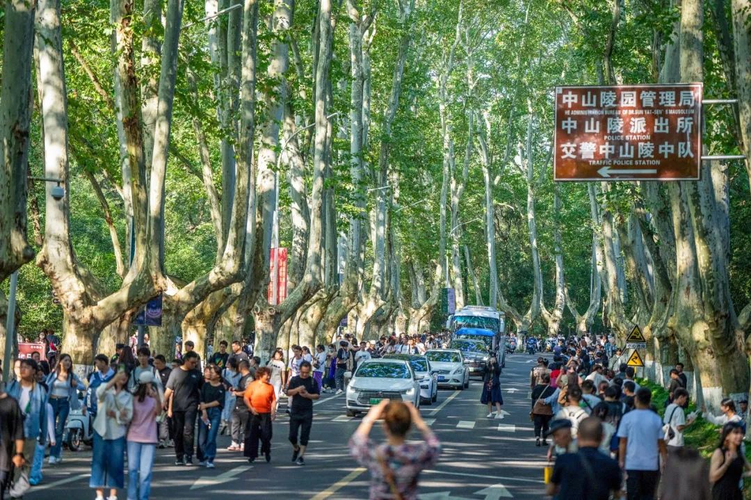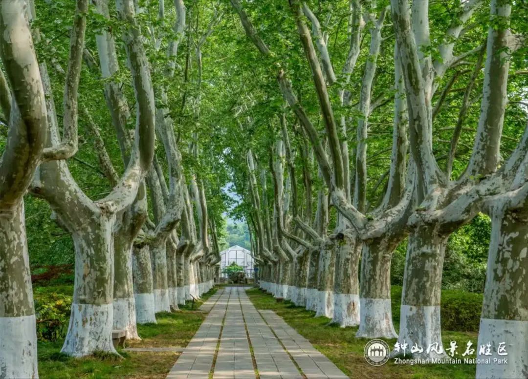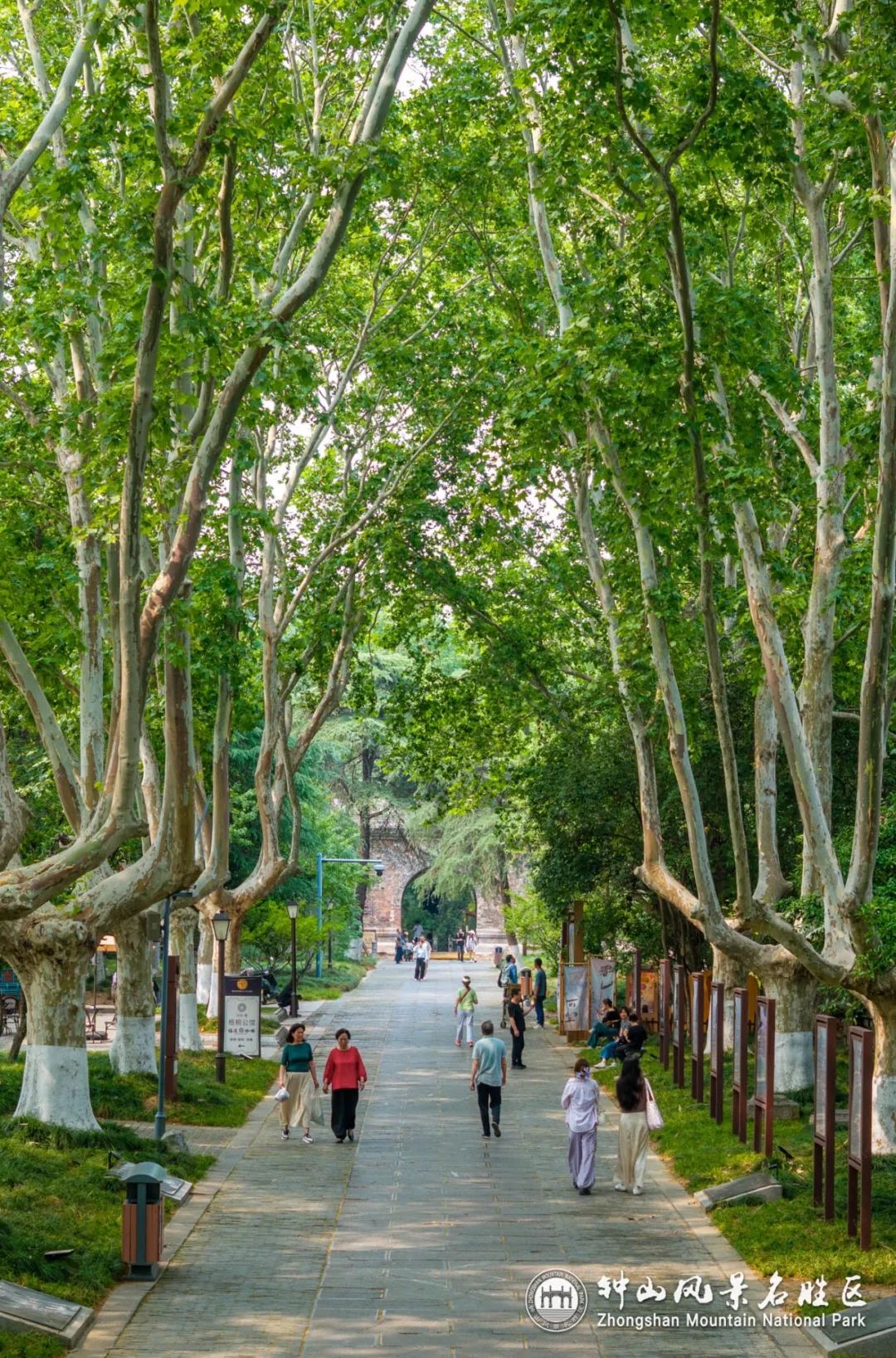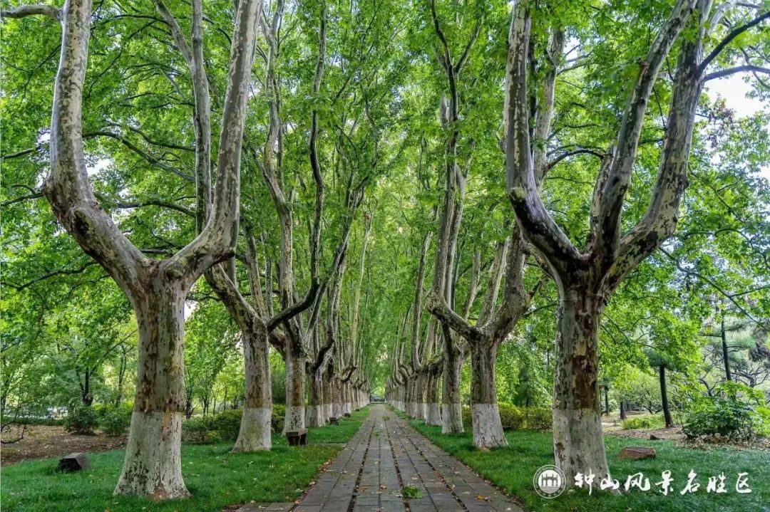 很多人不知道,在世界文化遗产明孝陵里,也藏着一条梧桐道。这条梧桐道位于石象路以北、花房前。这里的梧桐用四季更迭浪漫,园艺师们精心培育的花儿每年从这里运往各处。两排共59株二球悬铃木,历经岁月沉淀,在南京市第六次古树名木普查中,被列为古树名木。