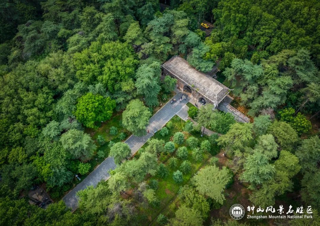 大金门正北方向约73米处,是大明孝陵神功圣德碑亭,二者在南北同一轴线上,中间仅隔一条横空跨过陵园路的木栈道天桥。