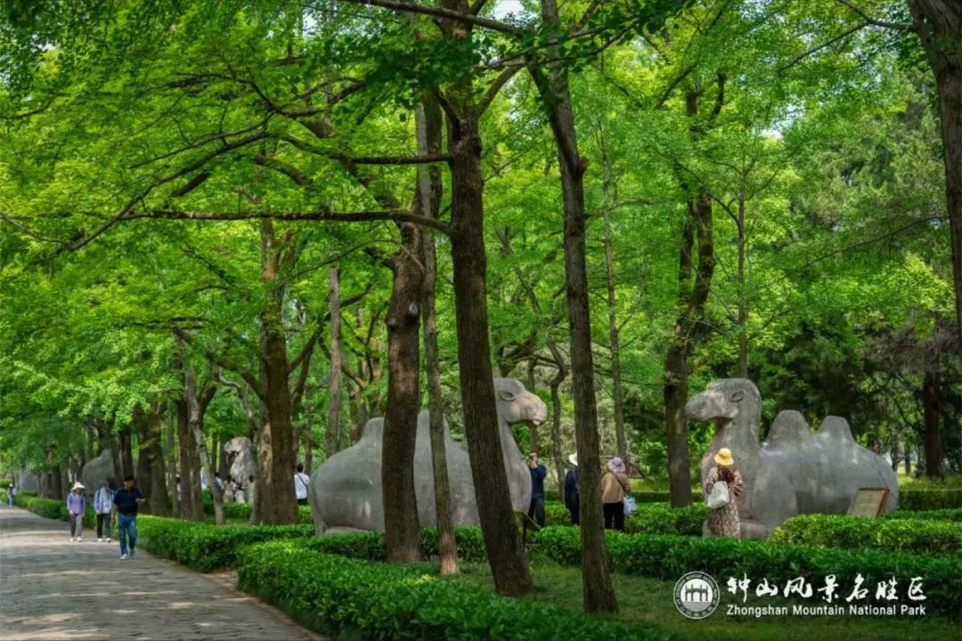 从四方城拾阶而下,行至明孝陵5号门,是“最美600米”石象路。夏天的石象路满目青翠,郁郁葱葱,既有生机勃发的活力,又有历经岁月的沉稳。两侧的石兽六百年来静默伫立,在绿意的映衬下更显庄重肃穆。