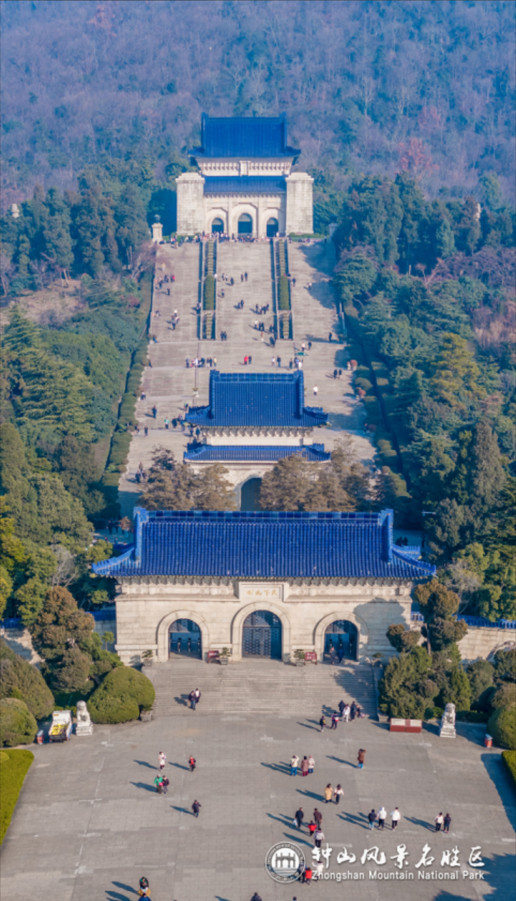 从广场到祭堂,中山陵一共有392级石阶,均采用苏州花岗石。共分为10段,在各段石阶之间设有平台,作为缓冲,平台上还建有建筑物或陈列纪念物品。中山陵十层平台宏伟壮观中充满着变化和韵律。更为奇妙的设计是:自平台向下俯视,只见平台连成一片如同平地,不见石阶;而自下而上仰视时,只见石阶层层叠叠,不见中间平台。