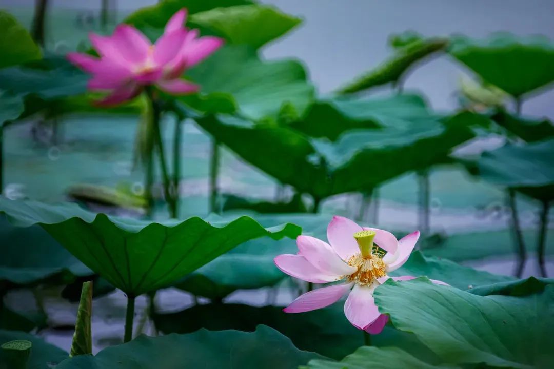 During the rainy season in Jiangnan region—when the plums ripen and rainfall peaks—the lotus takes on an even more poetic presence. Raindrops fall onto the broad, round leaves, turning them into jade-like dishes cradling crystal beads of water. Petals droop and sway with the breeze. Sometimes, a dragonfly lands on a newly opened bud, just as poet Yang Wanli described: "A young lotus just peeks above the surface, and already a dragonfly rests on top."After the rain, the scent of lotus mingled with damp earth rises gently into the air, calming even the restlessness of summer.