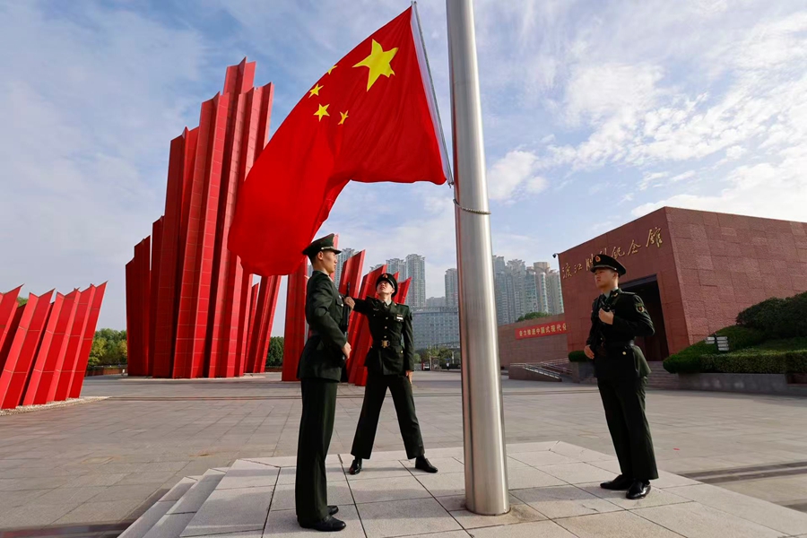 渡江胜利纪念馆升旗仪式现场。褚旭峰摄