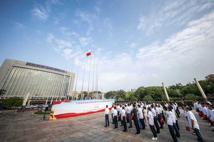 高淳经济开发区全体机关人员集中参加升国旗仪式。刘列摄