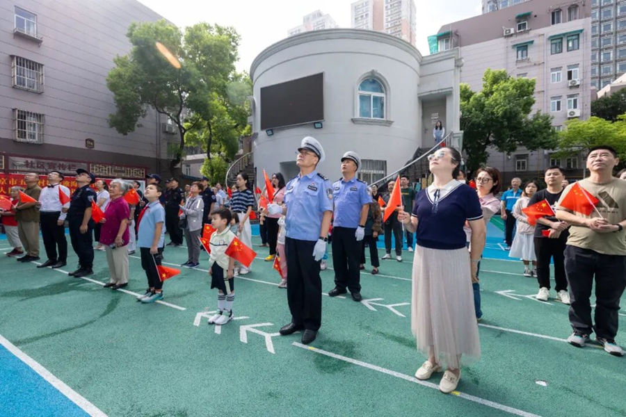 南京市秦淮区五老村街道淮海路社区升旗仪式现场。淮海路社区供图