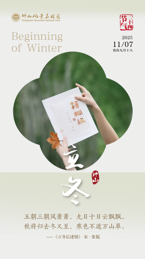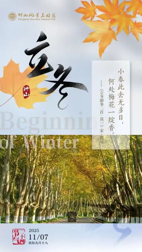 立冬,是秋的余韵,也是冬的开幕。北风悄至,万物收敛,我们从裹挟着初冬的清寒中,已经可以感受到这份来自季节轮回的讯息。作为冬天的开篇,立冬正伴着钟山层林尽染的秋色,为新的季节拉开帷幕。