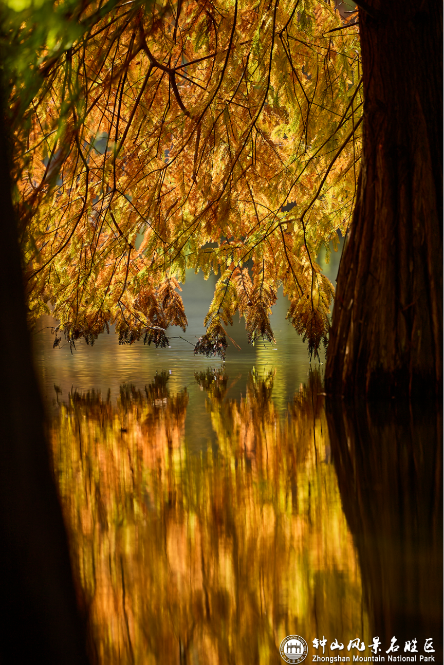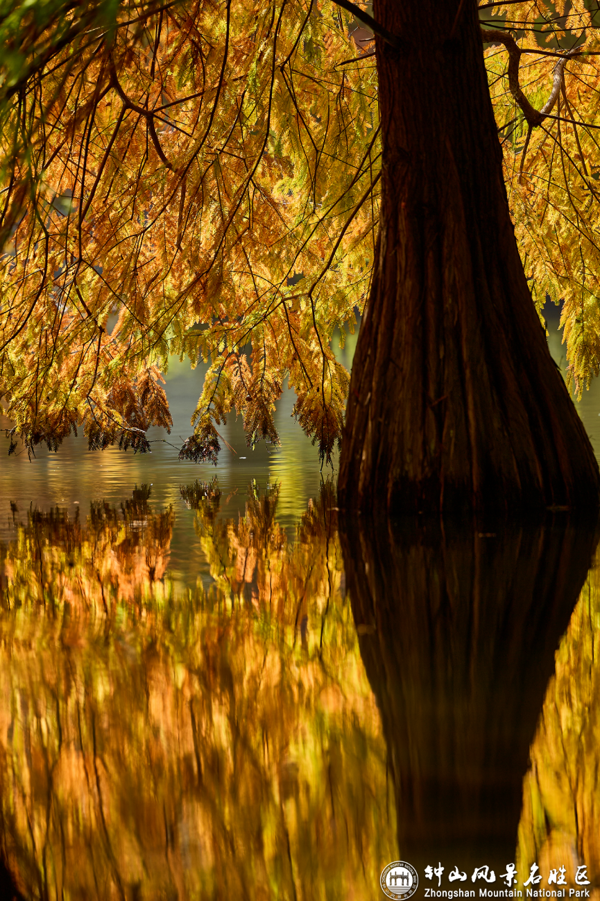 秋冬交替,不必奔赴远方,眼前的燕雀湖藏着最治愈的光影魔术。清晨的薄雾还未散尽,落羽杉林就被慵懒的阳光镀上一层柔光,纷纷扬扬的枝叶犹如羽毛般随风摆动,仿佛一场红雨瓢泼。树木倒映在澄澈的湖水中,分不清是树入画里,还是画落湖中。风一吹,在你耳畔回响的,便是紫金山秋日最动听的私语。