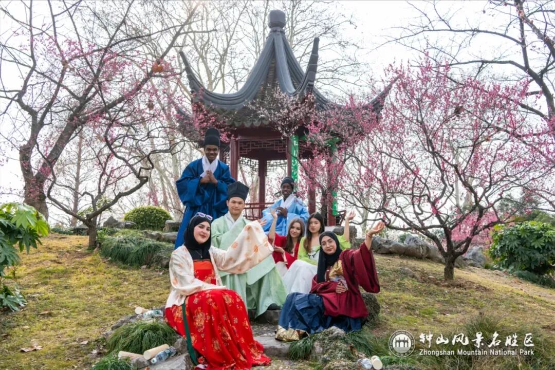 谁说老外不爱“中国梅”?今年赏梅季,我们创新推出 “国际赏梅观光车线路”,邀请摩洛哥留学生现场体验,制作双语赏梅攻略宣传视频。这条“开往春天”的游线,串联陵园路(梧桐大道)、最美600米石象路、梅花山、红楼艺文苑、钟山文学馆等景点,搭配双语讲解,让 “钟山梅” 的清香飘向全球。