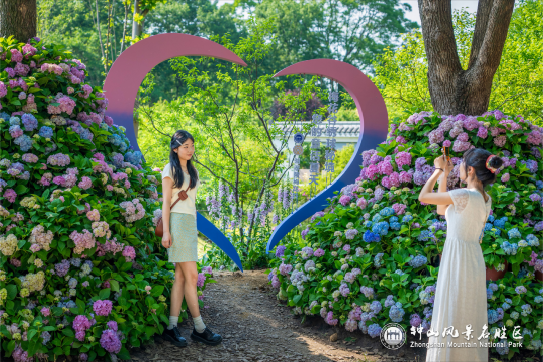 在钟山,有多少人来燕雀湖拍了无尽夏水雾景观?2025年,梅花谷绣球花展以“燕雀湖畔藏着无尽的夏”为主题,营造仙气缭绕的如梦似幻空间,燕雀湖面20座花卉浮岛点缀其间,宛如漂浮的“水上花园”。今年新添置的火山石溪涧旁蓝色系鸢尾与紫色系羽扇豆、飞燕草错落交织,黑天鹅在倒影杉林的水面缓缓游动,让人不禁沉醉于无尽夏的梦幻世界。