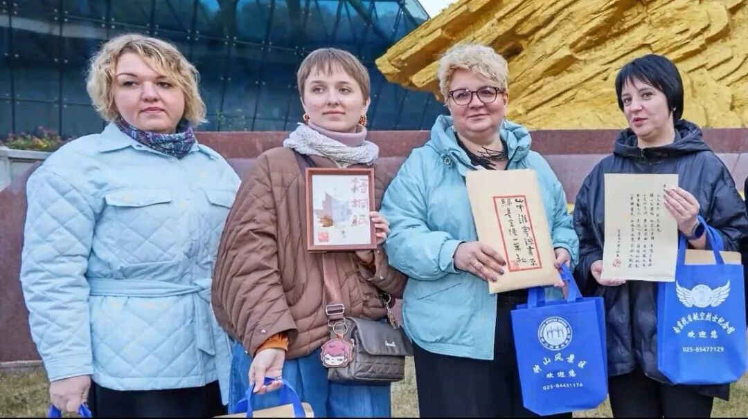 在南京抗日航空烈士纪念馆的中俄青少年友好交流活动中,“钟山的秋”实现了跨文化传递,当俄罗斯友人接过这份特殊的礼物,梧桐宣纸的独特质感与自然清香,成为他们直观感受中华文化深厚底蕴与独特魅力的窗口。