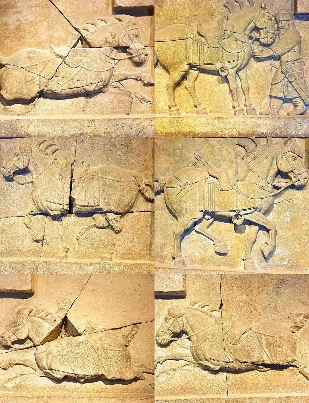 说到帝王与战马,在唐代,“昭陵六骏”闻名遐迩,六件汉白玉浮雕分别刻画唐太宗征战骑乘的六匹战马。由唐太宗选题、阎立本设计、欧阳询书赞,融合写实与写意,象征盛唐开拓精神,是唐代石雕典范。西安碑林博物馆藏有“昭陵六骏”中的四件浮雕,承载着对盛唐开拓精神的缅怀,是研究唐代石雕与军事历史的重要实物。