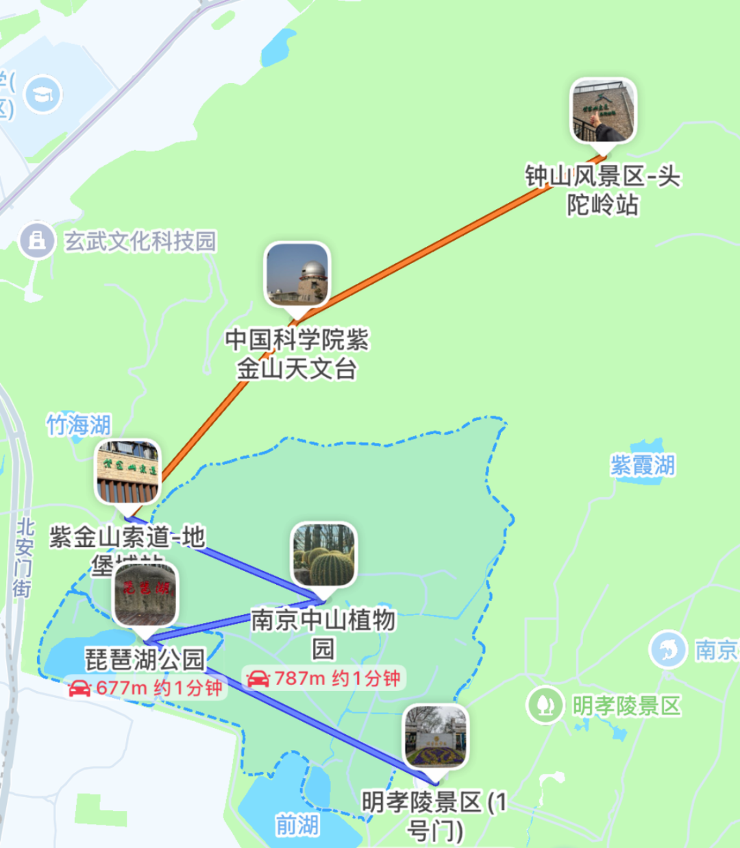 1、在站点乘坐索道观光车:中山陵广场站、金水桥站(明孝陵景点内);