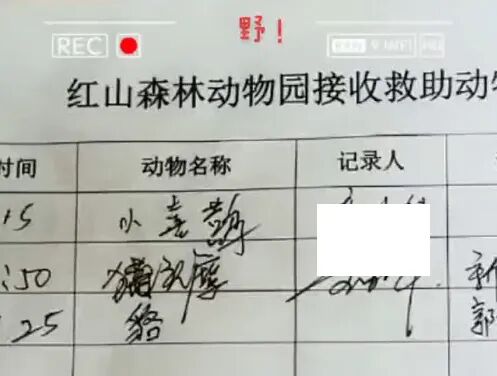 红山森林动物园接收救助动物清单,云几店员提供