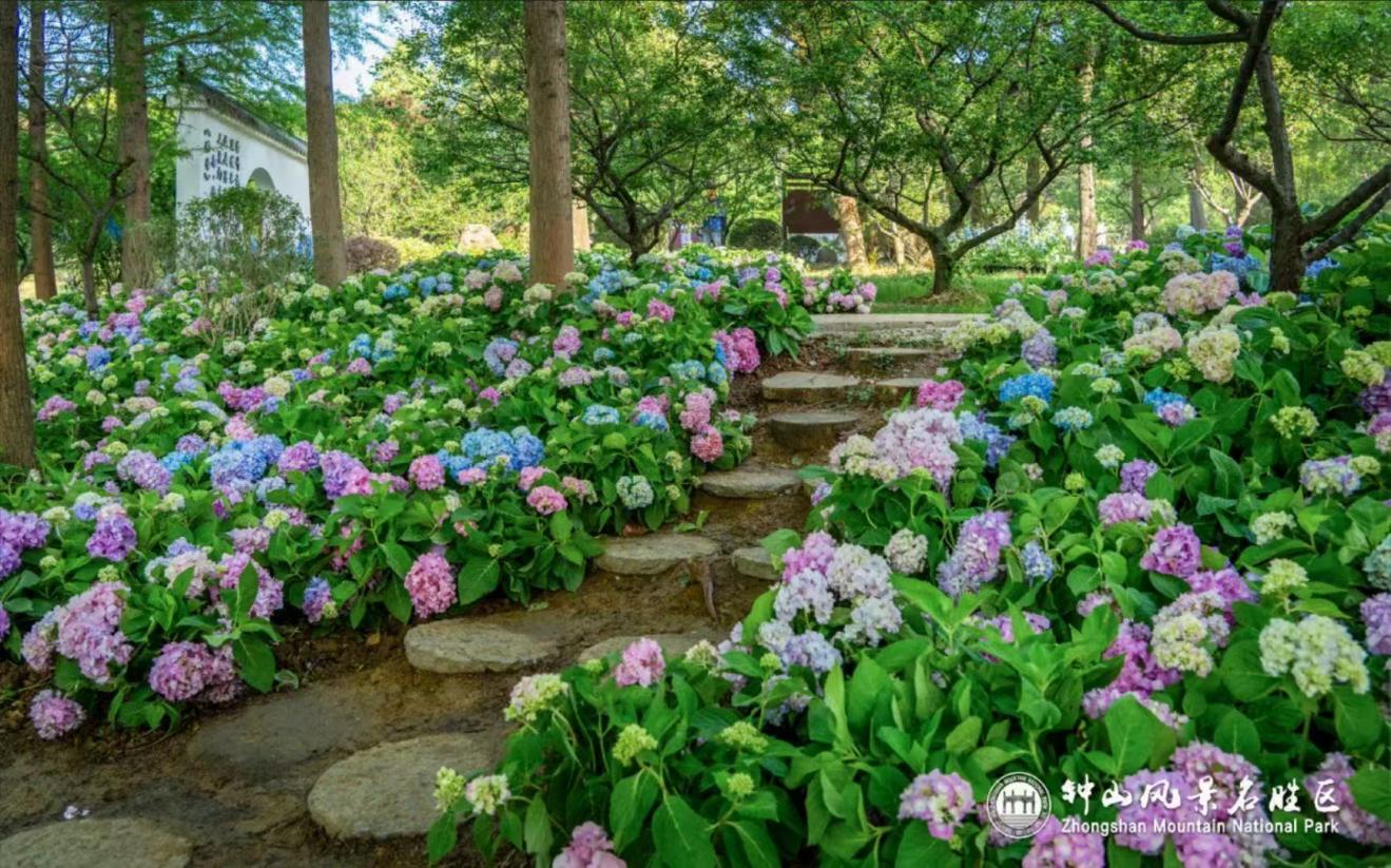 近日,明孝陵景区2025梅花谷绣球花展正式启幕。本届绣球花展以“燕雀湖畔藏着无尽的夏”为主题,覆盖明孝陵3号门至4号门落羽杉林、霹雳听泉、如意湖等区域,沿燕雀湖安装雾森系统营造氛围空间,打造3号门无尽夏花海、火山石鸢尾花涧、水上漂浮花园、观鸟居蓝色绣球秘境、立体绣球花瀑、如意湖旱溪花涧六大景观单元,精选品种大花绣球、乔木绣球、圆锥绣球和欧洲木绣球共约2500株,吸引大批游客驻足打卡拍照。