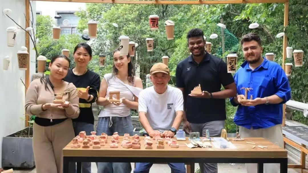6月初的芒种节气,明孝陵博物馆联合南京传媒学院国际传播学院,邀请了来自蒙古、韩国、阿联酋、巴基斯坦、俄罗斯、法国等不同国家的30名外籍留学生,跟随非遗传承人学习制作绒花、拓印、陶印、烙画、扎染等非遗技艺。他们将传统技艺与现代创意相结合,创作出一件件令人惊喜的作品。