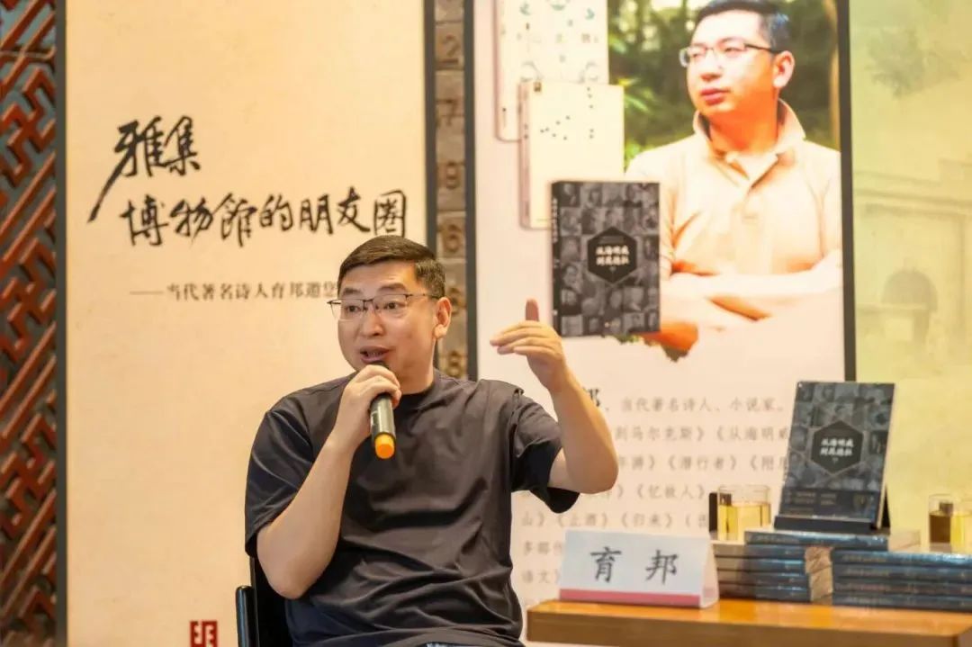 一个月后,“雅集”再次以“诗心叩问六百年——文化与自然遗产日特别对谈”的形式,推出了新的超时空“产品”。诗人、小说家育邦如约而至,成为青年学子们追慕的焦点。这一次,诗词朗诵、创作分享、互动交流,每个环节都不时碰撞出共鸣的火花,以至于不少路过的游客都被吸引并成为观众。一位大学生在活动后表示:“育邦老师的分享让我们感受到,诗歌作为当下生活的文化表达,既留在过去也照进了当下。”