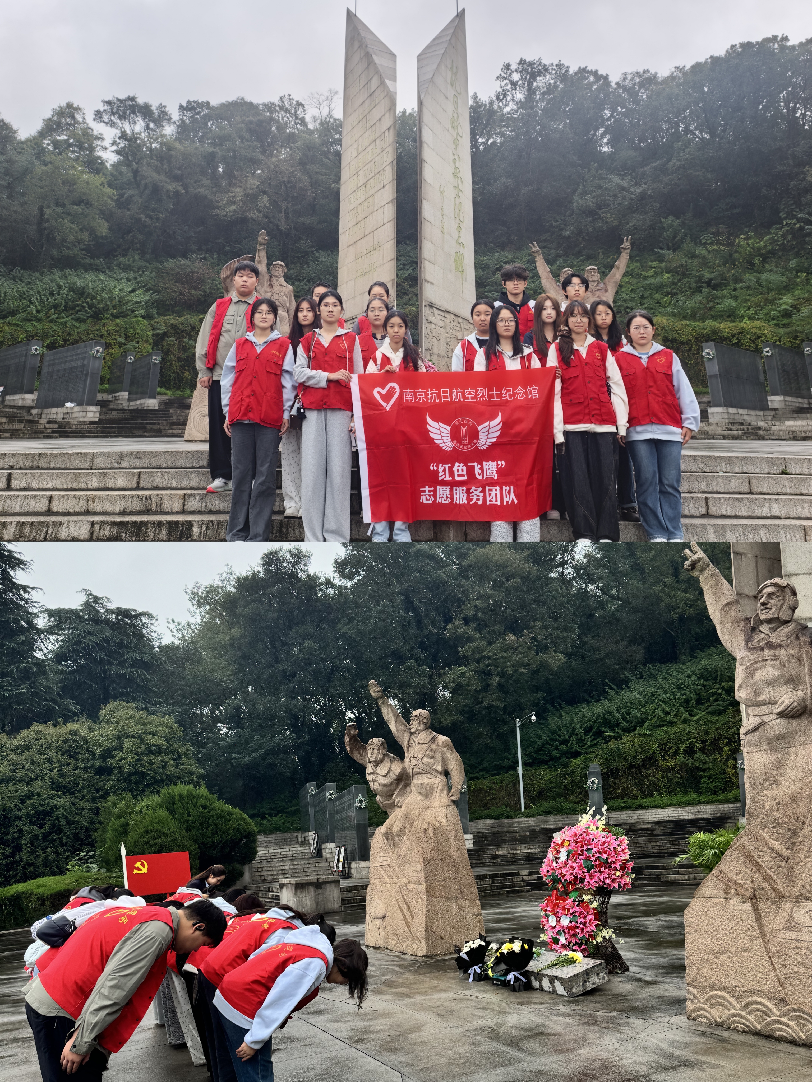 走出展厅,培训队伍来到庄严肃穆的抗日航空烈士纪念碑前,举行了一场简短而庄重的凭吊仪式。全体志愿者整齐列队、静默肃立,随后依次上前敬献鲜花,用最质朴的方式表达对英烈的缅怀与崇敬,进一步坚定了传承英烈精神的信念。