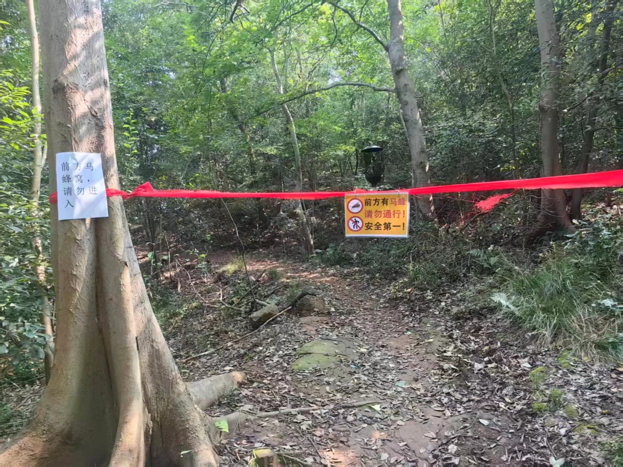10月份,马蜂活动进入高发期,为切实保障登山市民游客的人身安全,景区森林部门对紫金山马蜂窝分布区域进行拉网式排查,确保不留安全死角。