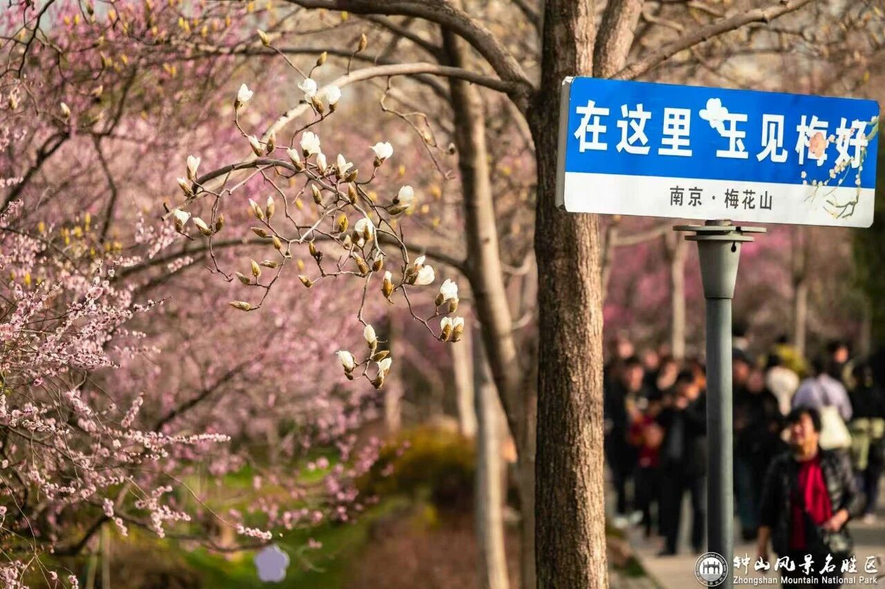 赏花地点:梅花山“玉见梅好”,位于明孝陵梅花山,可从2、3、4号门进入。这条名为“玉见梅好”的赏花路,两侧列植着高大的白玉兰。最难得的是,在这里可以拍到梅花与玉兰同框的画面——梅花作背景,玉兰为前景,构成钟山专属的春意花笺。