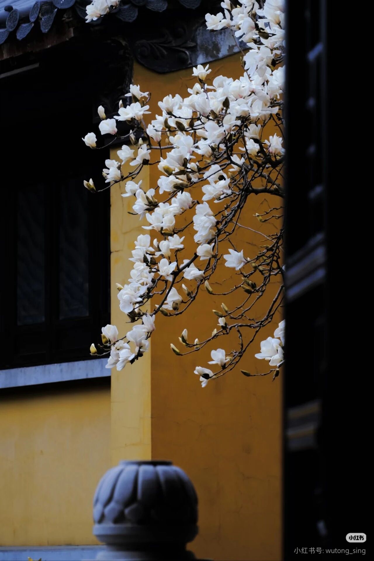 赏花地点:灵谷胜境,位于灵谷景区内,从灵谷寺路进入。古寺的黄墙黛瓦间,玉兰静静绽放,渲染着千年古刹的幽静与禅意。这里的玉兰更有韵味,曾被《中国国家地理》报道,是拍摄古建与花卉相映成趣的理想之地。