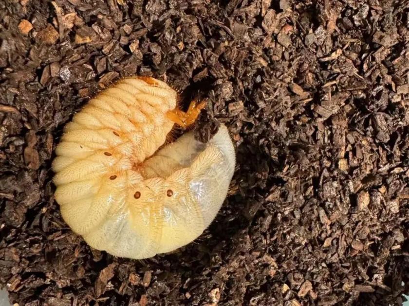 住在土里的“独角仙宝宝”,幼虫阶段叫蛴螬。身体粗壮,蜷成C形,生活在腐木或腐殖土中。腹部有9对气孔用来呼吸,头部有一对强壮的颚用来嚼碎腐殖质。