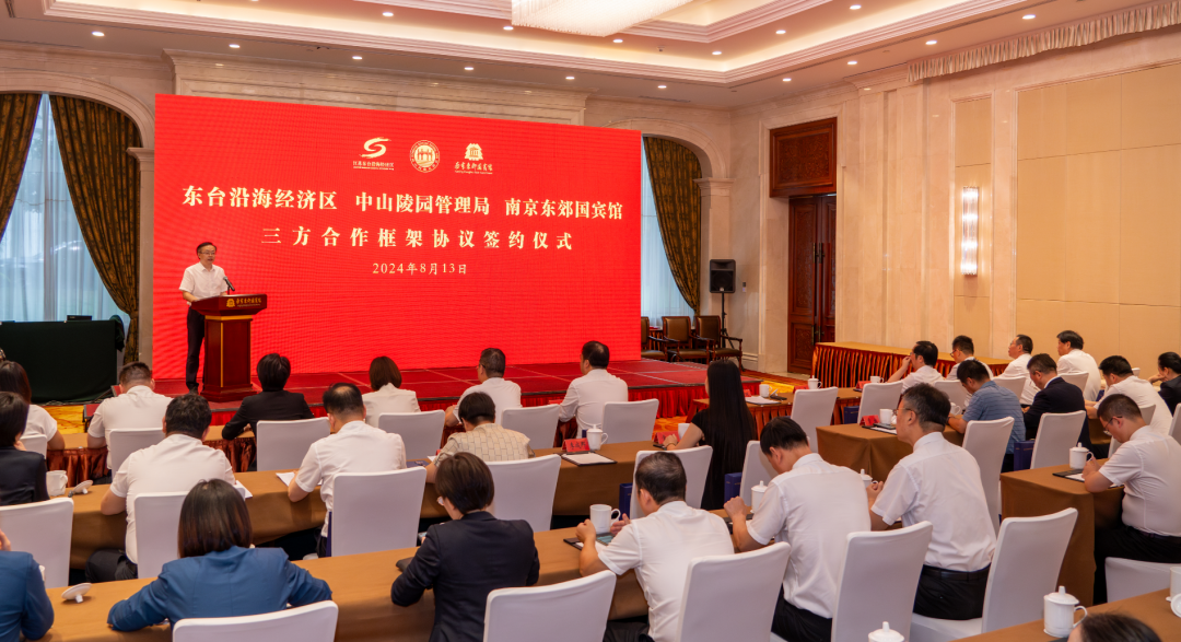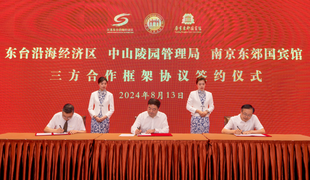 8月13日下午,中山陵园管理局与东台沿海经济区、南京东郊国宾馆齐聚钟山,签订三方合作框架协议,探索世界文化遗产与自然遗产的“跨界+创新”合作模式。