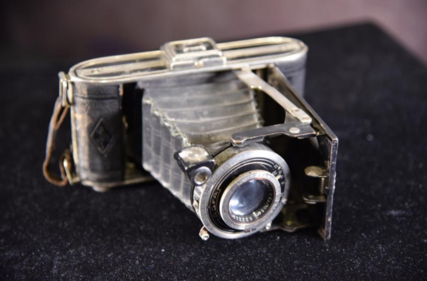 为了拍摄关东军司令部门口的公告,毕天民趴在对面商铺的房顶上苦苦等待.等到一辆汽车恰巧经过司令部门口,毕天民借助汽车发动机的嘈杂声,迅速按下快门。