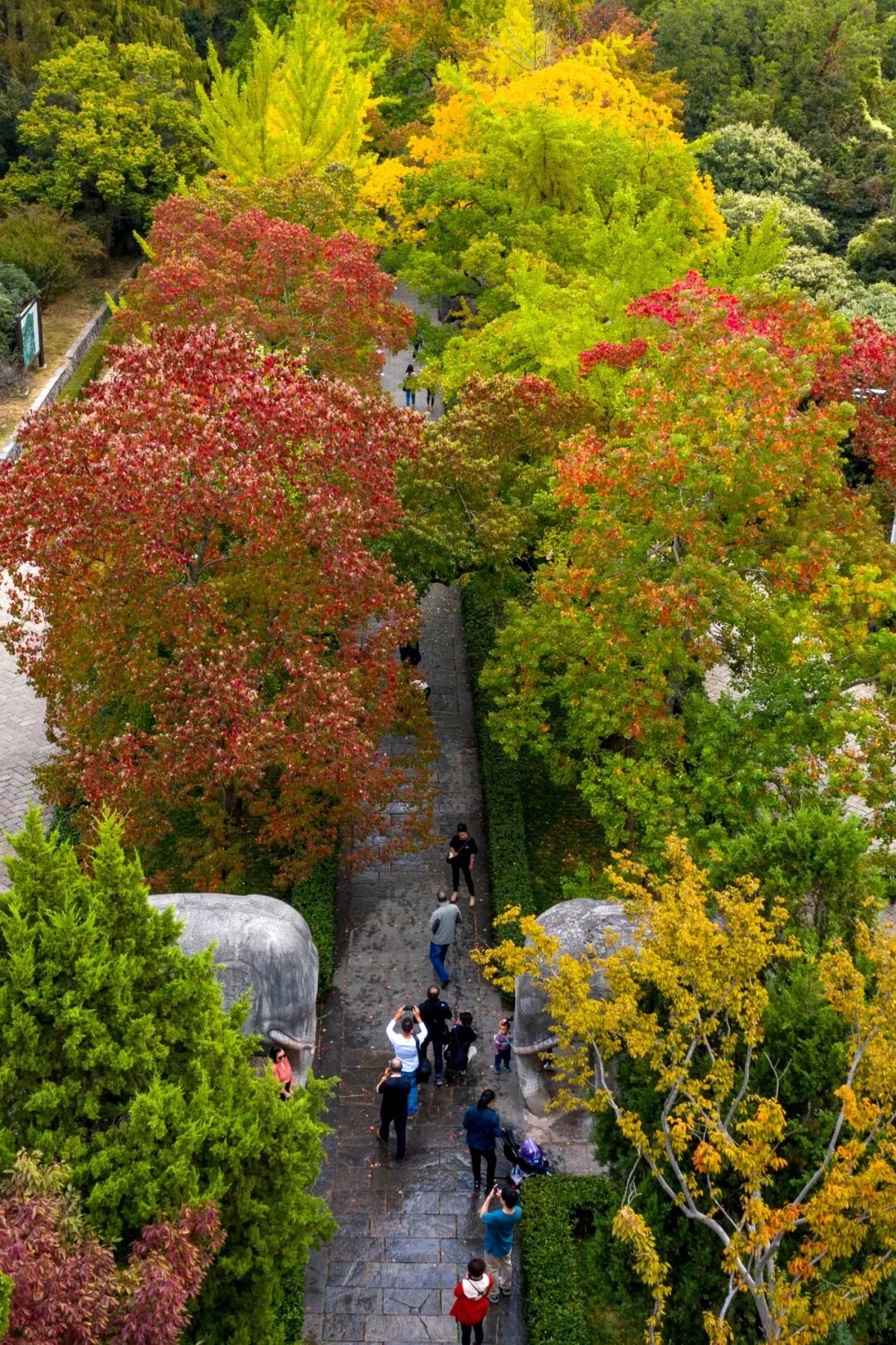 作为“秋到紫金山”的必打卡地之一,明孝陵神道——“南京最美600米”,燕雀湖落羽杉林等,广受市民游客喜爱,明孝陵景区已成为金陵秋日极具代表性的风景线。